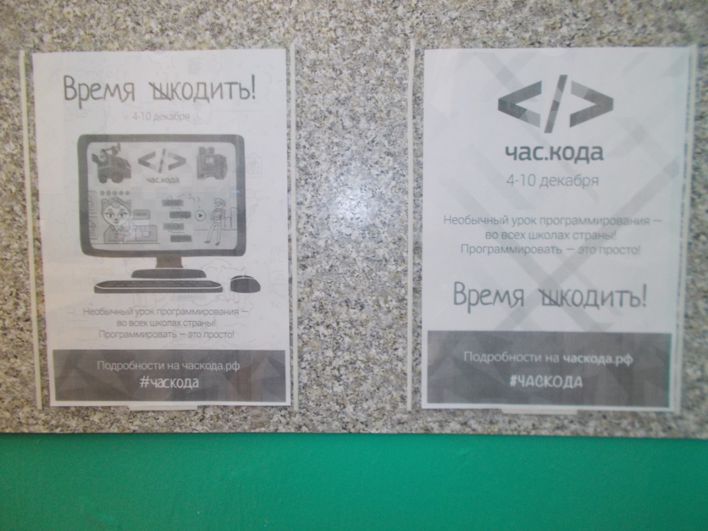 С 4 по 10 декабря проходила четвертая Всероссийская акции «Час кода». Акция направлена на формирование и поддержку интереса молодежи к изучению информатики и программирования, а также на повышение престижности ИТ-специальностей в глазах молодых людей.