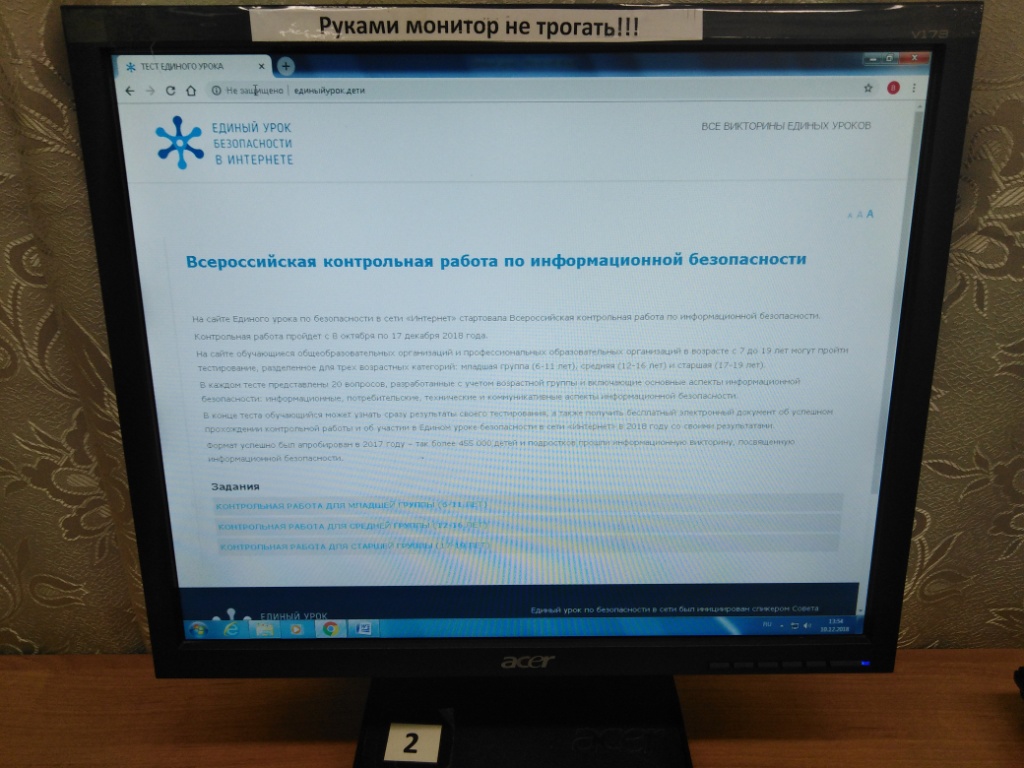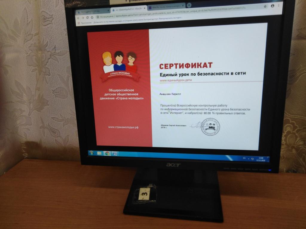 С 10.12.2018 по 17.12.2018 г. в нашей школе проходил «Единый урок безопасности в сети интернет», который рекомендован Советом Федерации по развитию информационного общества, а так же спикером Совета Федерации Федерального Собрания Российской Федерации В.И. Матвиенко.