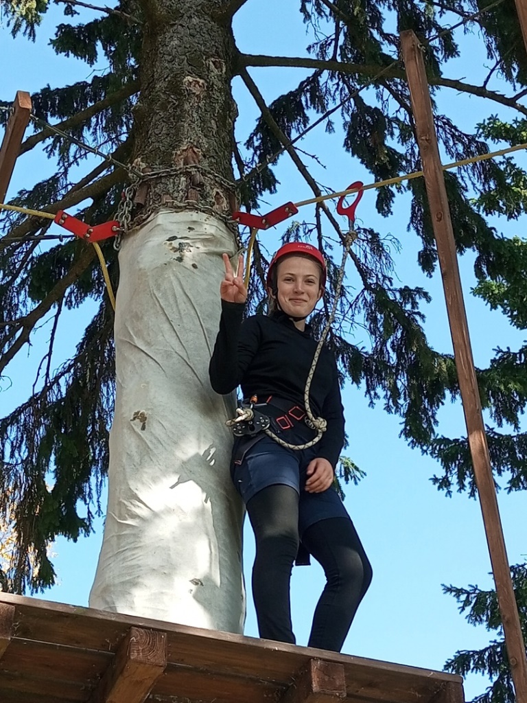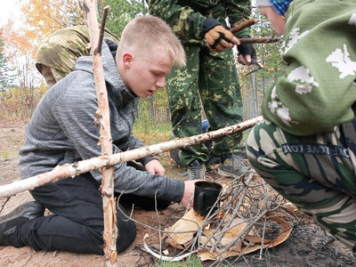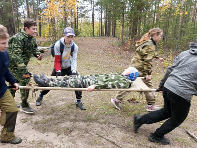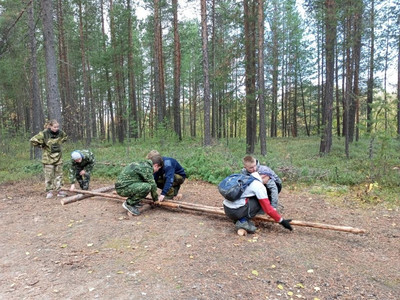 Первым состязанием был «Маршрут выживания». От всей команды участвовало 6 человек. По сигналу «СТАРТ» командам нужно было преодолеть длинную дистанцию с препятствиями: «Древолазание», «Юный водник», «Бивак», «Азимут», «Конец Александрова» и другие. Второе место было за нами.