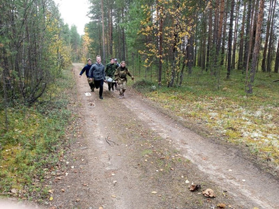 Втрое соревнование в первый день был «Дуатлон». Трое участников 2 мальчика и 1 девочка бежали определенную дистанцию и стреляли по мишеням. Если был промах-штрафной круг. Наша команда заняла первое место.