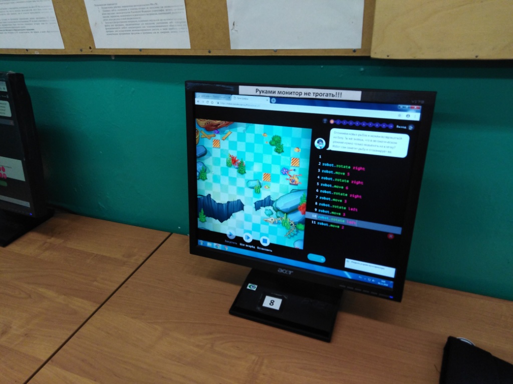 Данная акция была приурочена ко дню информатики, отмечаемого в России 4 декабря. В акции участвовали 35 учащихся с 7- 11 класса. Учащиеся в начале урока посмотрели видео урок о принципах программирования, а затем полученные знания они проверили на практике – программировали на тренажерах. Кто проходил все 10 уровней, тот получал сертификат.